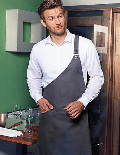 Rozměry: 70 x 90 cm (šířka x délka) | Materiál hlavní části: 65 % polyester / 35 % bavlna, 215 g/m² | Lze prát, snadná údržba | Stylová elegantní zástěra v asymetrickém střihu | Všechny popruhy jsou vyrobeny ze stejné látky jako zástěra a lze je snadno sejmout | Délku lze snadno nastavit pomocí přezky | Poutko na pero na hrudi | Šikmá kapsa (19 x 16/26 cm) na pravé straně