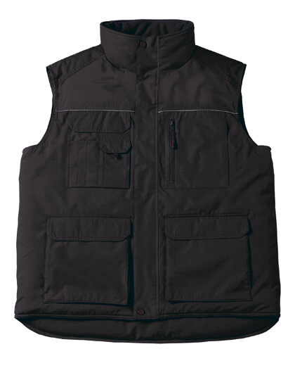 Out: 100% Rip-stop polyester odolný proti větru, voděodolný a voděodolný. V: 100% těžká polstrovaná polyesterová podšívka (200 g / m²), podšívka z mikrovlákna pro kapsy a límec. 3 vnější kapsy na tužky. Dvojité přední kapsy.