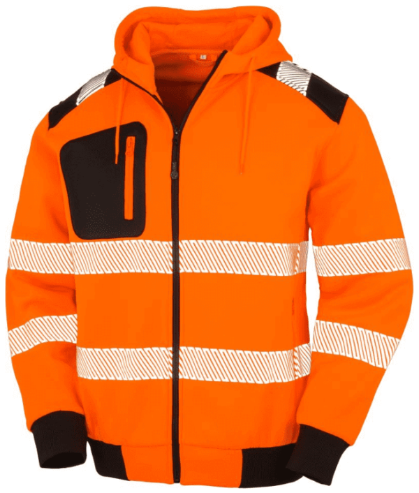 Odolná proti větru a prodyšná, kapuce se stahovací šňůrkou, široké žebrované manžety na rukávech a lemu, YKK zip, 2 boční kapsy a 1 náprsní kapsa se zipem, ergonomicky prodloužená zadní část, uvnitř hřejivý, kartáčovaný fleece, poutko, EN ISO 20471: 2013 A1: 2016 třída 2, oranžová barva navíc RIS-3279-TOM třída 2, měkké potištěné reflexní bezpečnostní pásy, neutrální velikostní štítek, pratelné na 40°, maximálně 25 mycích cyklů.