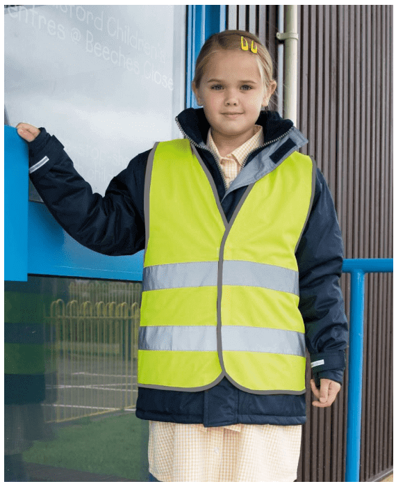 120g/m², 100% polyester šedé lemy, dva 5 cm reflexní pruhy, volný střih, splňuje EN1150-89-686-EEC třídy 2