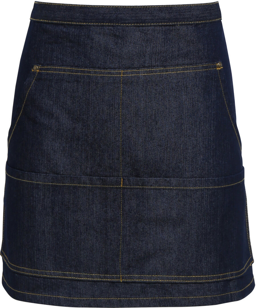 265g/m², 70% bavlna, 30% polyester Kontrastní riflové prošití, měděné nýty, 4 kapsy, lze prát na 60 ° , průmyslové praní na 85 °
