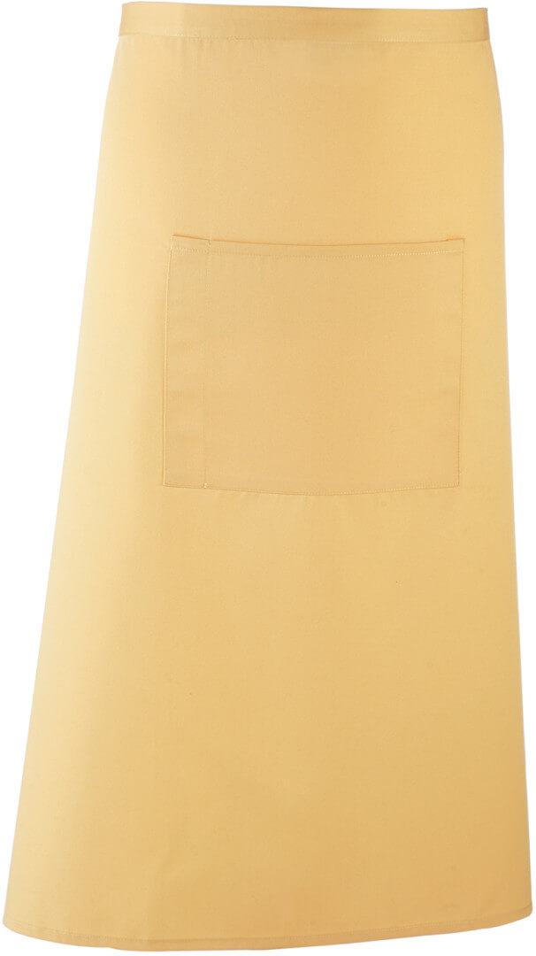195g/m², 65% polyester, 35% bavlna se šňůrkou na zavázání, šňůrka 90 cm, zástěra má v přední části klasickou kapsu s kapsou na propisku, délka zástěry 80 cm, šířka 90 cm, lze prát na 60°, průmyslové mytí 85°