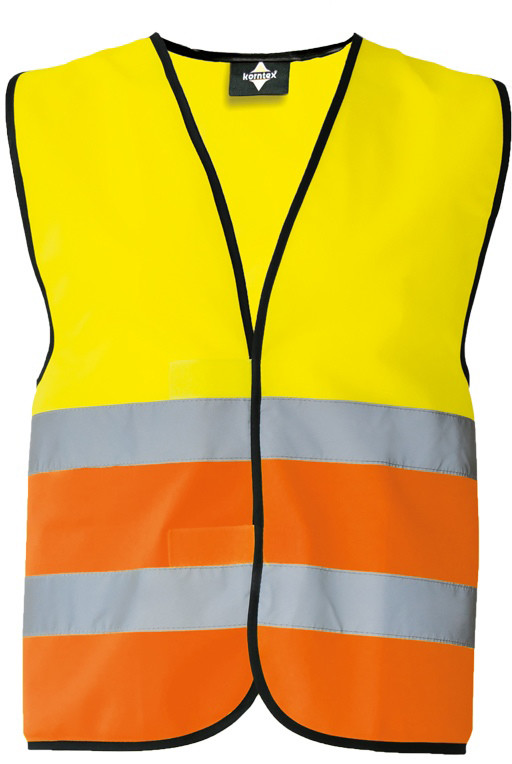 100% polyester Dva 5cm široké reflexní pruhy, lemované černým polyesterovým lemem, nastavení velikosti dvěma pásky na suchý zip, certifikované podle EN ISO 20471: 2013