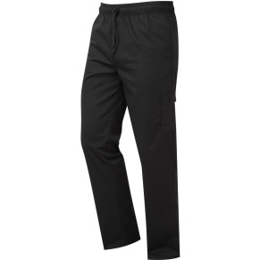Materiál: 195g/m², 65% polyester, 35% bavlna-twill. Elastický pas se šňůrkou, cargo kapsy na boční straně, 2 boční zasouvací kapsy, zadní kapsa na suchý zip, délka: 82cm, pratelné na 60°, chemické čištění, lze sušit v sušičce při nízké teplotě.