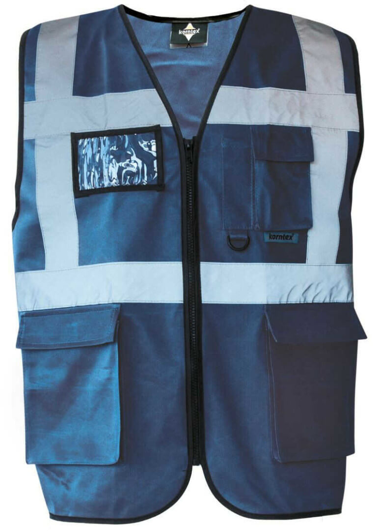 Plný přední zip, 2 kapsy s klopami na suchý zip, kapsa na doklady, kapsa na smartphone, přihrádka na pero, kroužek na klíče, neon pink a neon green certifikované podle EN1150, barvy yellow, orange, yellow/orange a yellow/blue odpovídají EN ISO 20471 (všechny ostatní barvy nevyhovují), čtyři reflexní pruhy široké 5 cm