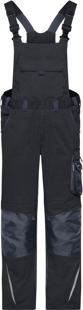 Pánské pracovní kalhoty s nastavitelnými, elastickými ramínky, elastický pás s poutky na pásek, zipy YKK, zasouvací kapsy, několik kapes na nářadí, kapsy na kolena vyztužené Cordura®, prostorné kapsa se zipem ve vnitřní straně nohavic, odolný proti roztržení, tří-pásmový šev, reflexní prvky (bez ochranné funkce). Lze prát na 60 °, vhodné k sušení v sušičce.