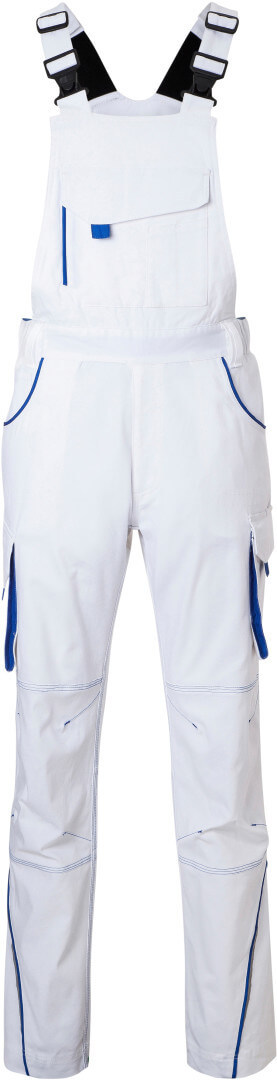 Pánské pracovní kalhoty na šle, ergonomicky přizpůsobitelné díky obsahu elastanu, nastavitelné šle s elastickými ramínky, elastický pás s poutky na pásek, skryté knoflíky a zipy, několik kapes na nářadí, kapsa na pravítko, pero, prostorné kapsa se zipem na vnitřní straně nohavic, odolné proti roztržení, 3 pásmový prošívaný šev, reflexní prvky (bez ochranné funkce vpředu i vzadu, doporučené prát na 60 °, vhodné k sušení v sušičce. Vyrobeno z 97% bavlny a 3% elastanu.