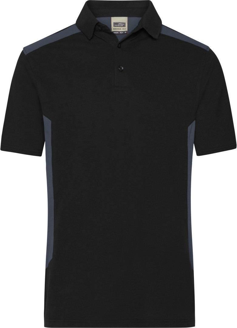 Pánské pracovní Polo tričko s pleteným límcem, 3 knoflíky na zapínání tón v tónu s tričkem, vsadky v kontrastní barvě na boku a ramenou. Lze prát na 60 °, vhodné k sušení v sušičce. Vyrobeno z 50% organické bavlny a 50% recyklovaného polyesteru.