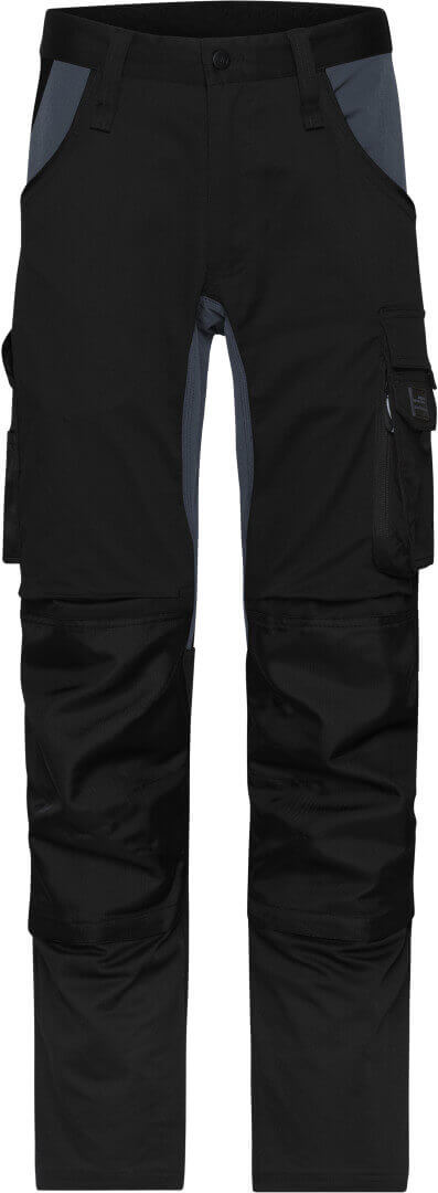 Pánské pracovní kalhoty se slim, úzkým střihem, poutka na pásek, zipy YKK, několik kapes na nářadí, kapsy na kolenou výztuže Cordura®, kapsy vyztužené Cordura®, odolné proti roztržení, 3-směrný prošívaný šev, odolná, směsová tkanina, pohodlné na nošení díky elastickému materiálu, doporučené prát na 40 °.