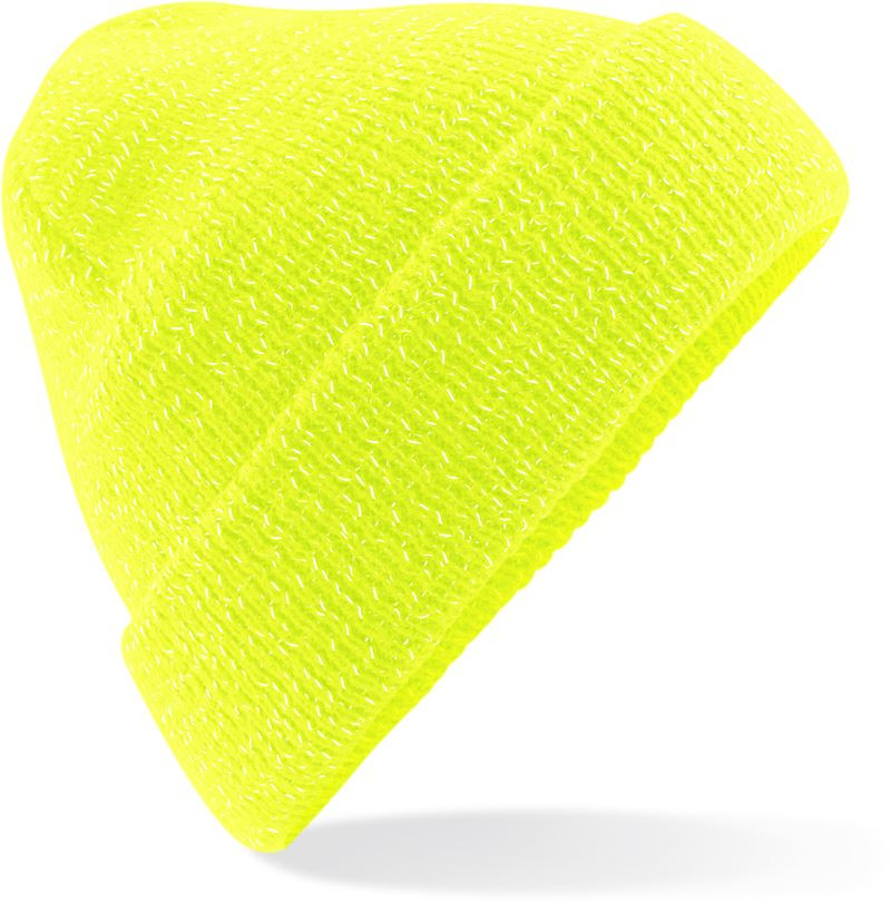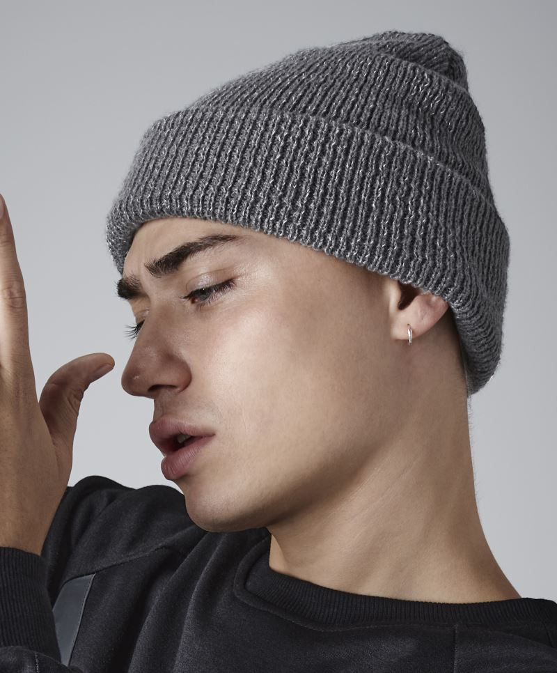 Unisex, ohrnutý lem, dvojitě pletená, vysoce reflexní vlákna, štítek TearAway, ruční praní, nelze žehlit, nelze sušit v sušičce, nelze chemicky čistit.