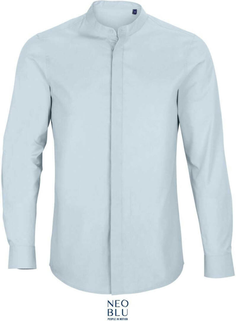 Popelínová košile s dlouhým rukávem a Mao límečkem