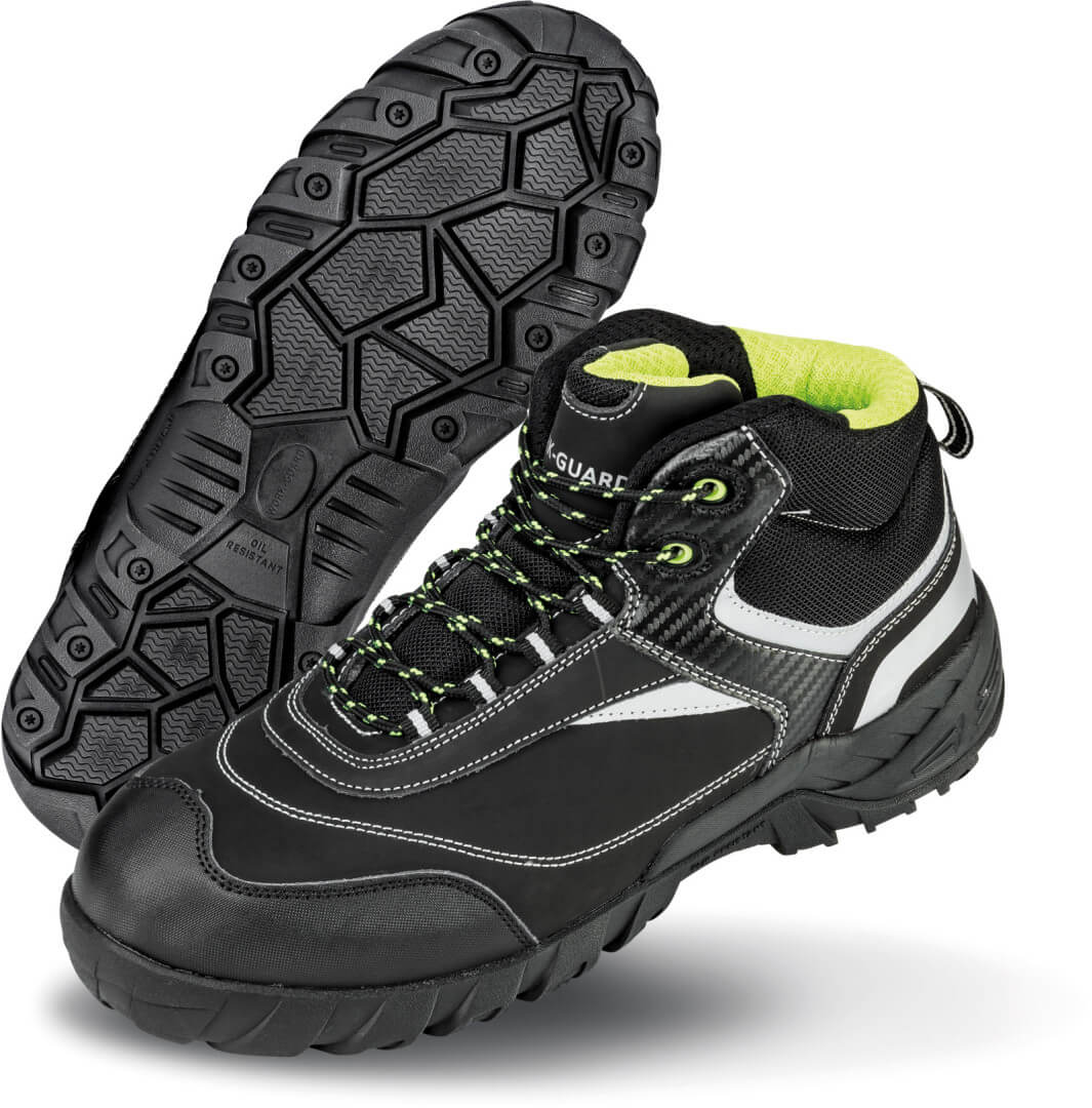 svrchní vrstva: nubuk kůže a mesh, mezipodešev: kompozitní, podrážka: guma, špice: ocel odolné proti skluzu/oleji, antistatické, zatahovací smyčka, reflexní prvky, vyztužený polstrovaný jazyk a manžeta, oděruvrdorná špice, vysoká absorpce energie v oblasti paty, prodyšné, voděodolné, splňují normu EN 20345: 2011 S3 SRC