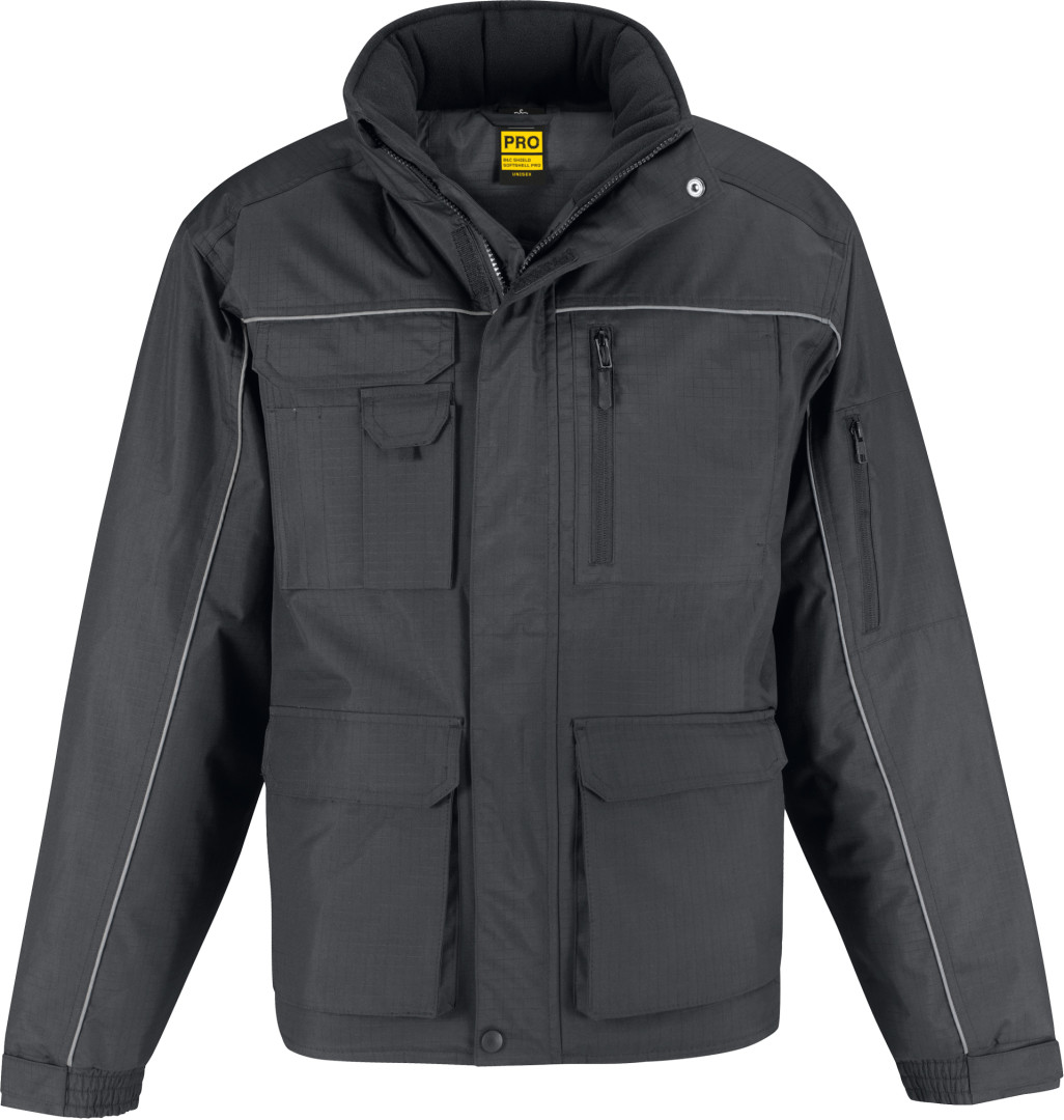 230g/m², nější vrstva: 100% polyester, vnitřní vrstva, podšívka: 200g/m², 100% polyester funkční pracovní bunda, skrytá ergonomická kapuce, 12 multifunkčních kapes, prodloužená zadní část, na rukávech nastavitelné manžety na suchý zip