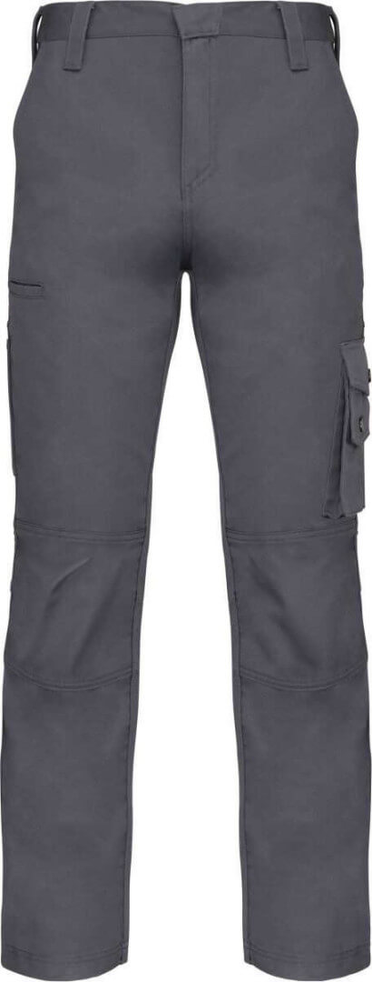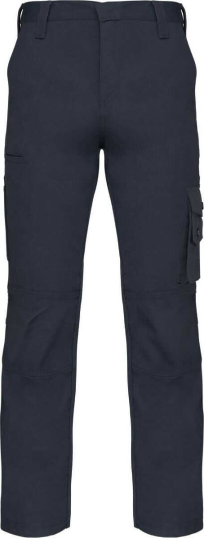 Zesílený trojitý šev v rozkroku, přední zip vpředu s knoflíkem, různé kapsy na nářadí, 2 zadní kapsy, 1 boční kapsa, francouzské velikosti