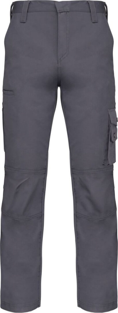 Zesílený trojitý šev v rozkroku, přední zip vpředu s knoflíkem, různé kapsy na nářadí, 2 zadní kapsy, 1 boční kapsa, francouzské velikosti.