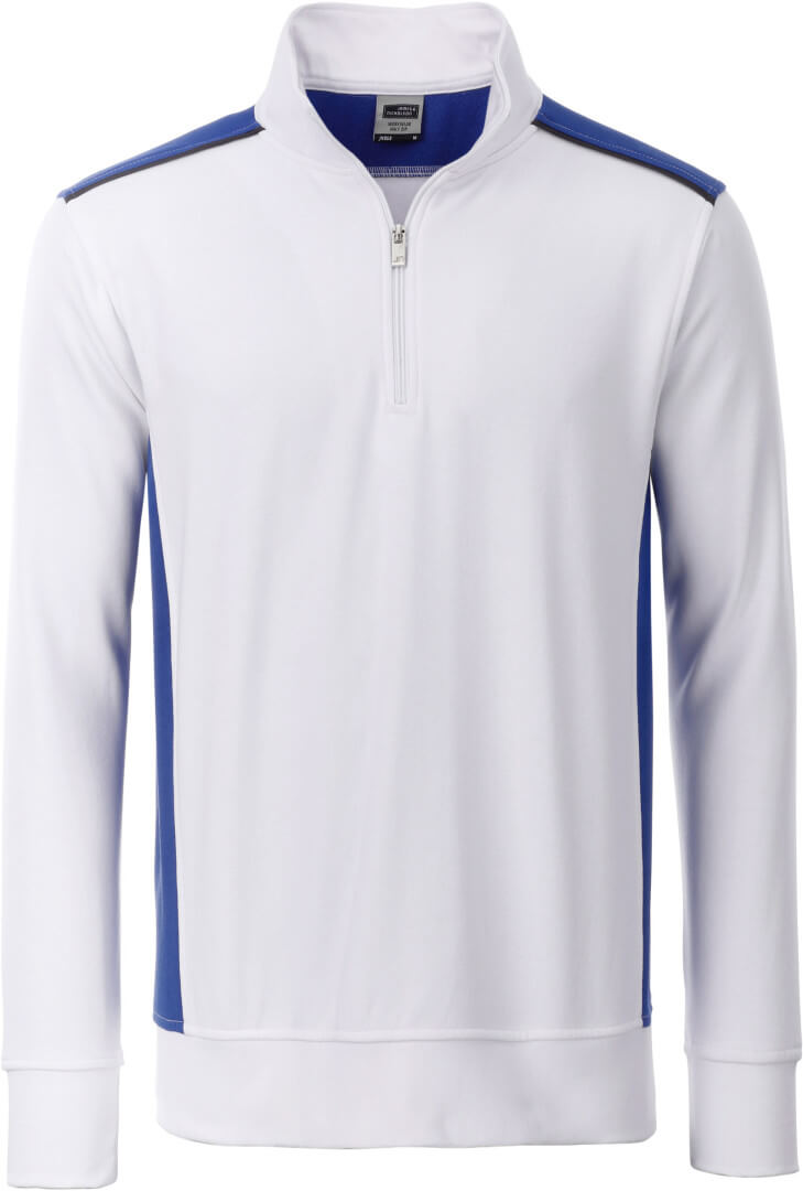 290g/m², 70% bavlna, 30% polyester načechraná vnitřní strana, kontrastní vklady po stranách a na ramenou, lemovka v přední části ramenou, žebrované manžety s elastanem na rukávech a v pase, lze prát na 60° a sušit v sušičce