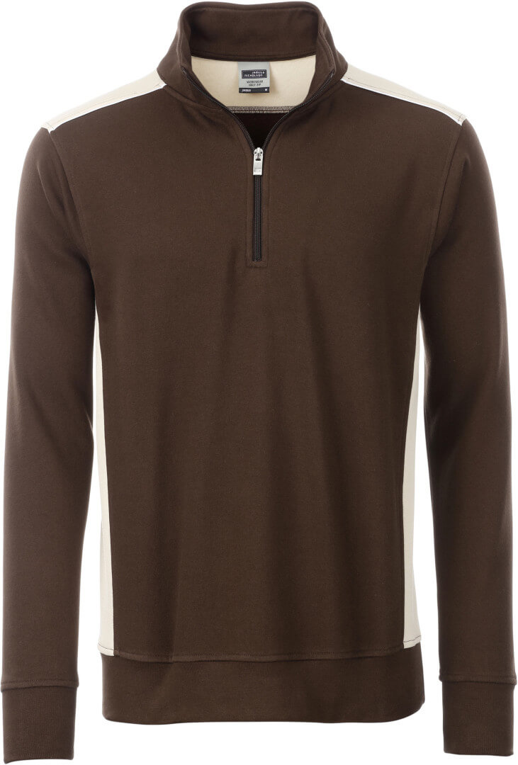 290g/m², 70% bavlna, 30% polyester načechraná vnitřní strana, kontrastní vklady po stranách a na ramenou, lemovka v přední části ramenou, žebrované manžety s elastanem na rukávech a v pase, lze prát na 60° a sušit v sušičce