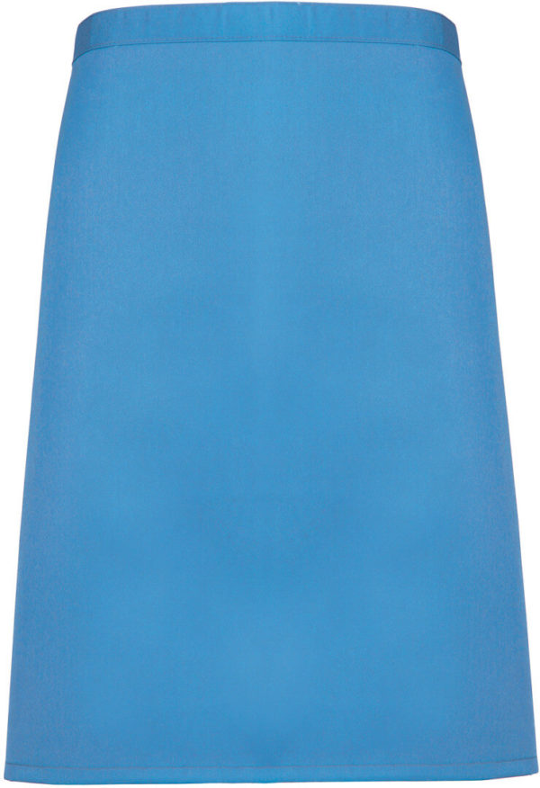 195g/m², 65% polyester, 35% bavlna se šňůrkou na zavázání. šňůrka je dlouhá 90 cm, délka zástěry 50 cm, šířka 80 cm, lze prát na 60°, průmyslové mytí 85°